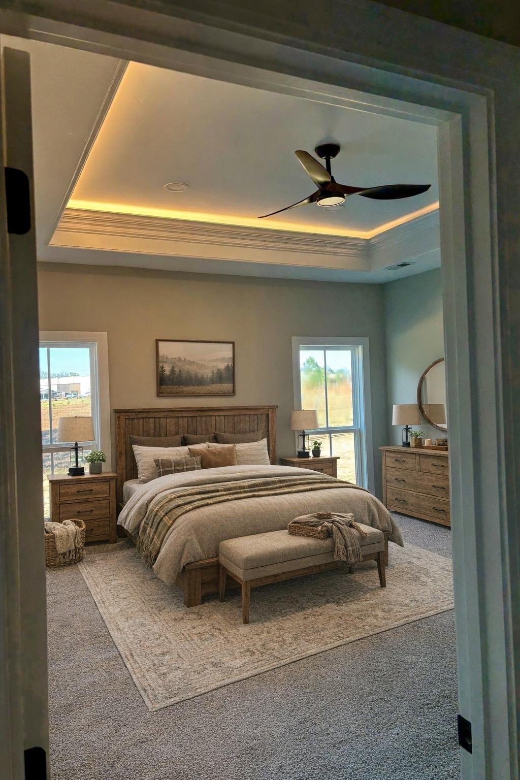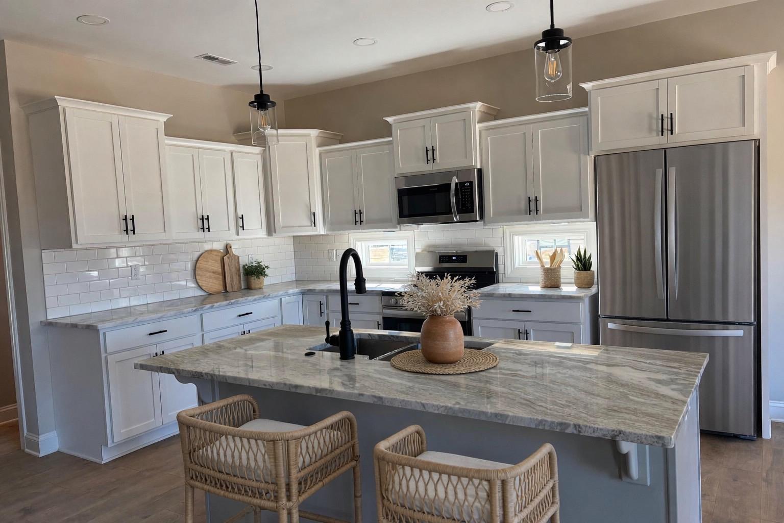 Another Custom Featured Home Under Construction! This beautiful farmhouse-style home offers approximately 1,635 sq. ft. of living space with 3 bedrooms, 2 bathrooms, and a 3-car garage—situated on a spacious 0.46-acre lot with a rear privacy fence to be built. Enjoy Southern charm from the rocking chair front porch before stepping inside, where the wow factor begins in the foyer featuring an indirect lighting shadow box. The living room showcases a stunning stone fireplace and a step trey ceiling accented with lighted crown molding. The kitchen will impress with white shaker perimeter cabinets, a gray island with granite countertops, stainless steel appliances, and a white subway tile backsplash with windows for natural light. A walk-in pantry completes this functional and stylish space. The primary bedroom offers a tray ceiling with indirect lighting, a double vanity with lighted mirrors, and a luxurious walk/roll-in shower. The laundry room includes a folding area, and the hall bath provides a single vanity with plenty of storage. Flooring: tile in all baths, carpet in bedrooms, and durable laminate throughout the main living areas. The three-car garage is thoughtfully designed — two bays feature a side entry with an 18’ wide door, and the third bay offers a straight entry with a 9’ wide door. The epoxy-coated floors add a polished touch, and the third bay is wired for a big-screen TV with a rear man door to the backyard — perfect for a workshop, hobby space, or private hangout. Outdoor living is complete with a covered rear porch and a large grilling patio area, with a rear fence to be installed along the back property line. NOTE: BUILDERS IS THE OWENER AND LISTING BROKER ON THIS PROPERTY.