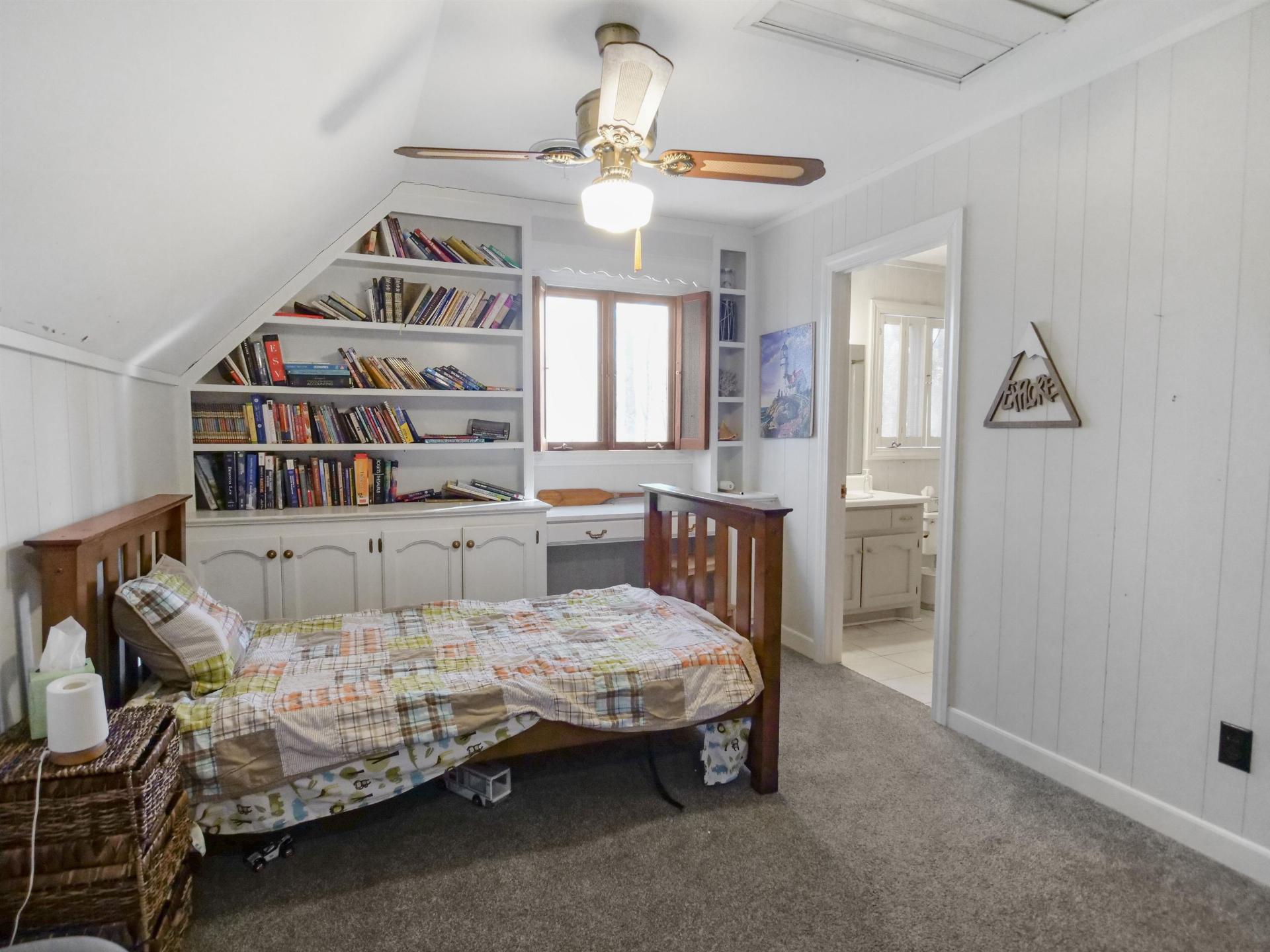 | Ceiling Fan(s) Ceilings-Some 9 Ft + Attic Stairs Fixed Fireplace Solid Surface Counters Bookcases In-Law Floorplan |