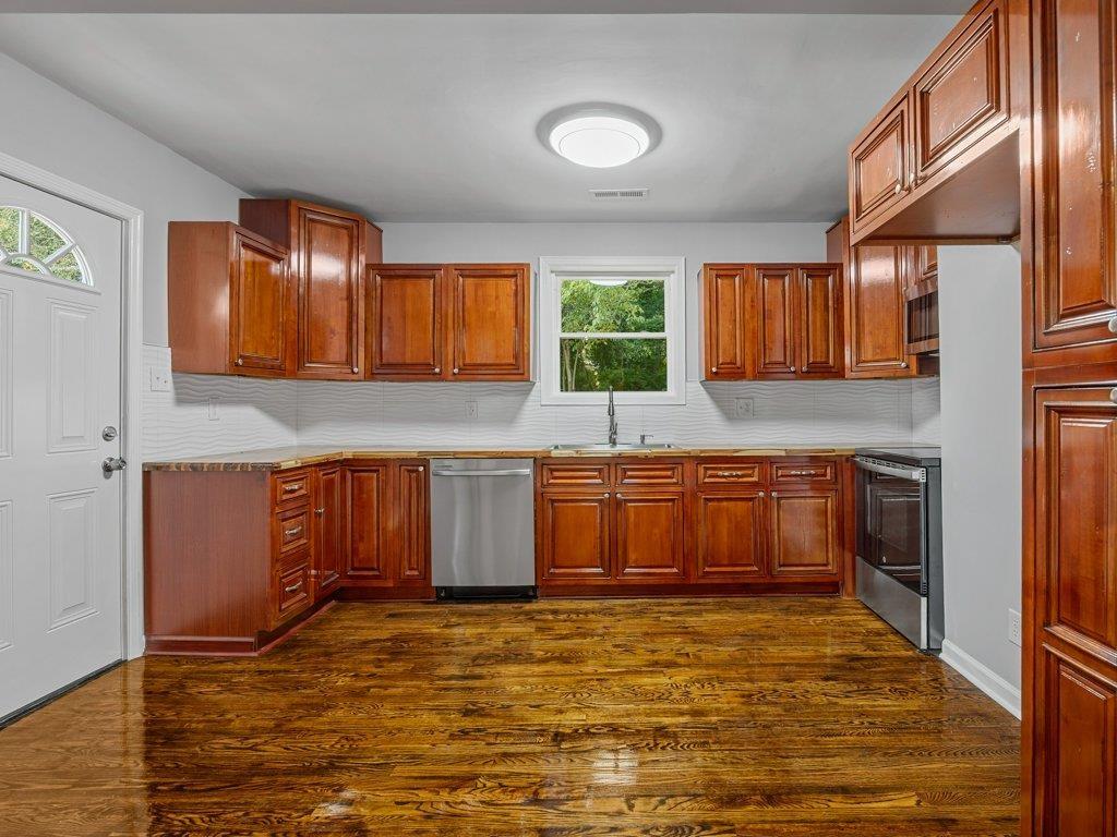 MOTIVATED SELLERS have made a LARGE PRICE IMPROVEMENT you don't want to miss out on!! This charming two-story all brick house is ready to welcome you with extra space to grow into, to Invest or welcome the extended family with a fully equipped mother-in-law suite! As you approach the property you are welcomed with an expanded paved driveway leading you to the new concrete steps up to the front porch, adorned with a modern newly installed railing. The main level features stained hardwood floors to the large open floor plan and an updated kitchen with all new stainless steel appliances and cherry wood cabinets. New light fixtures and ceiling fans offer a warm touch to all the upgrades throughout. There are two new bathrooms upstairs decorated with modern tile and all new vanities. From the dining room you will access the new staircase into the second floor where a secondary open kitchen and living room area is fully equipped with stainless steel appliances. The options are endless as this space has a large bedroom with a full bath. Both levels have their own laundry room and their own front door allowing for privacy to both sections of the property. Don’t let this property slip away and schedule your showing today!