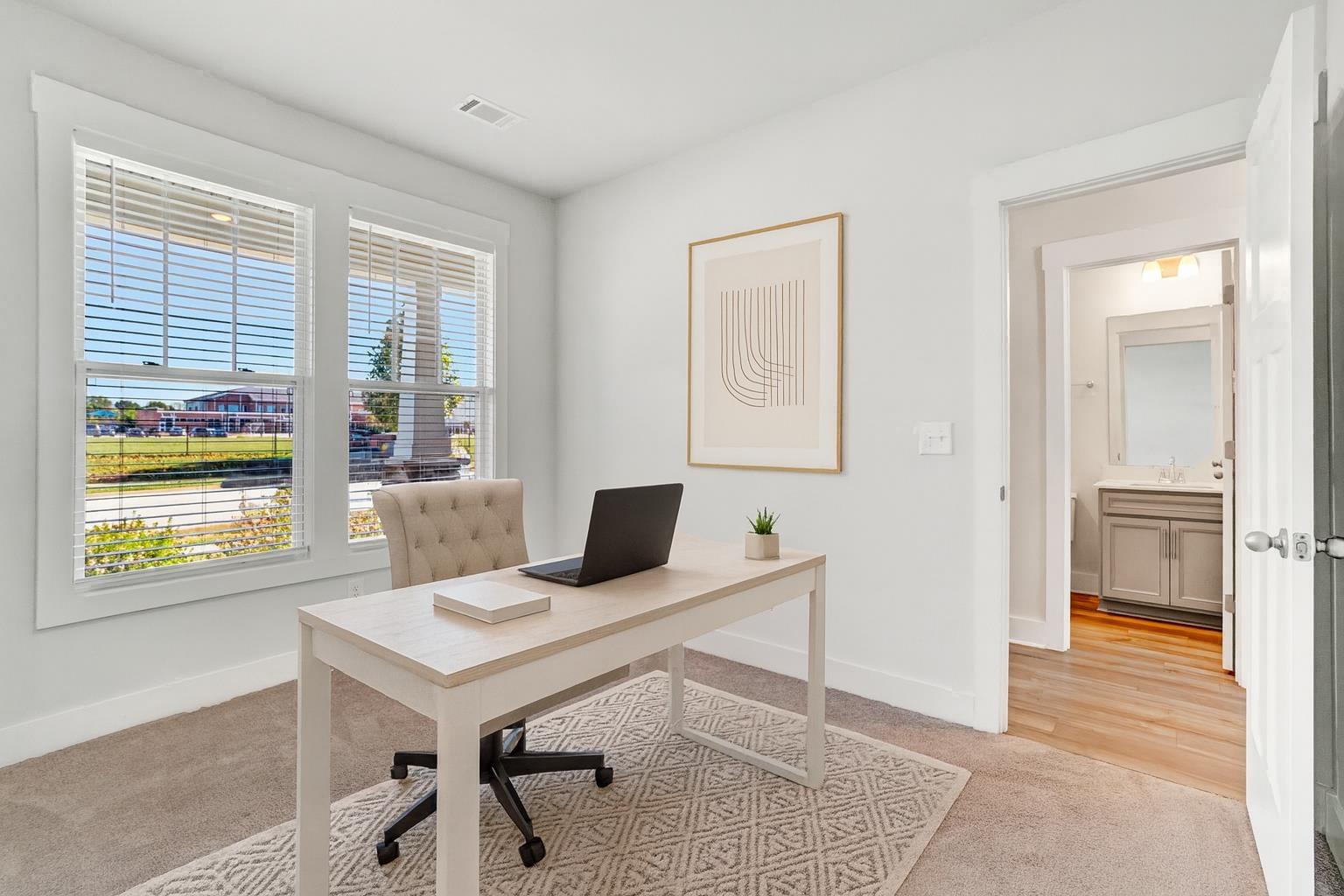 $0 Down Payment Eligible! Morning walks along the trail, evenings by the fire pit - this is home! Welcome to this beautifully finished 4-bedroom, 3-bath townhome, perfectly positioned near the local charm of Drayton Mills Marketplace and just minutes from downtown Spartanburg. 100% financing available - inquire for details! Features include luxury vinyl plank flooring, classic crown molding, upgraded cabinetry and a main-level bedroom or office with large windows that fill the space with soft, natural light. The kitchen delivers upgraded cabinetry, granite countertops, gas range, pull-out trash storage, and stainless Whirlpool appliances; including a refrigerator, washer, and dryer that stay. The dining nook and sunlit living room (with TV mount included) flow seamlessly, creating the perfect backdrop for both quiet evenings and easy entertaining. Upstairs, the primary suite includes two walk-in closets with ample storage for clothing and accessories, along with a private ensuite bathroom with dual vanities and quartz countertops. Two additional bedrooms (for a total of four), a 3rd full bathroom, a spacious laundry closet, and a linen closet complete the upper level. Enjoy outdoor living with a partially fenced patio, sidewalk-lined streets, and community amenities that include a fire pit, picnic area, and dog station. Walk the nearby trail, head to coffee at Drayton Mills, or simply unwind on your front porch. Lawn Maintenance Included. Call today to schedule a tour!